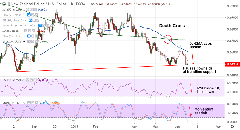 Technical indicators support further weakness in the pair. 'Death Cross' on daily set to plummet prices further.
