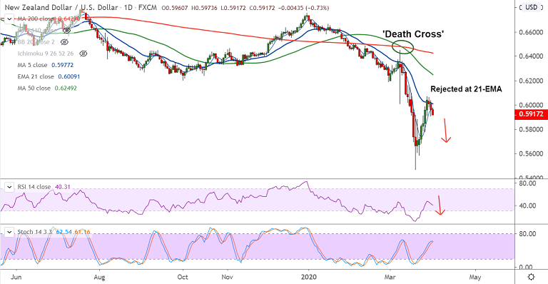Resistance levels - 0.5983 (5-DMA), 0.6011 (21-EMA), 0.6112 (50% Fib)
