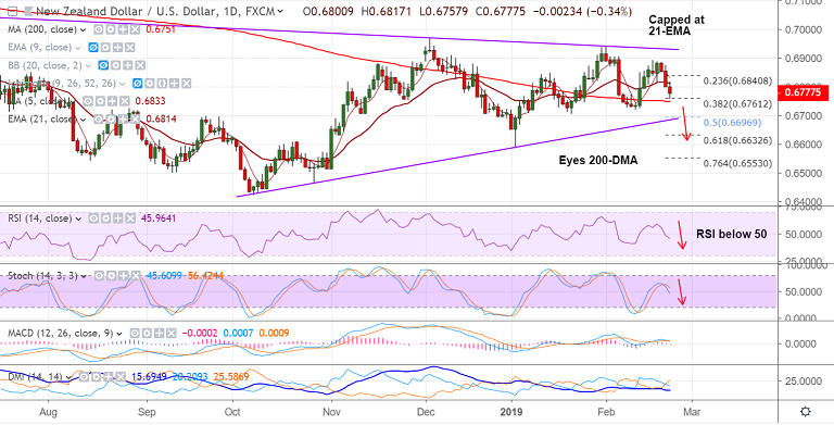 - The pair now eyes 200-DMA at 0.6751, break below 200-DMA will accentuate weakness.