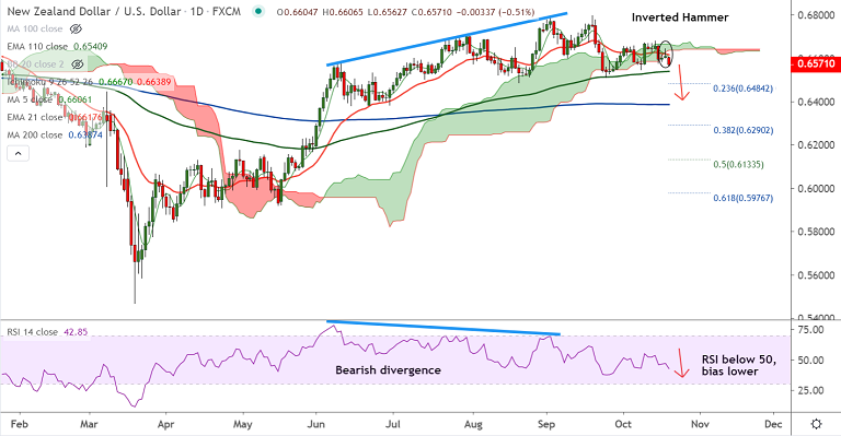 Technical bias for the pair is bearish. NZD/USD is on track to test immediate support at 110-EMA at 0.6540.