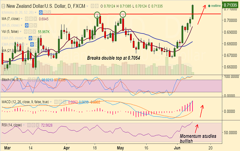 - With Fed delaying rate hikes, Kiwi bulls likely to push higher, pair on track to test 0.72 levels.