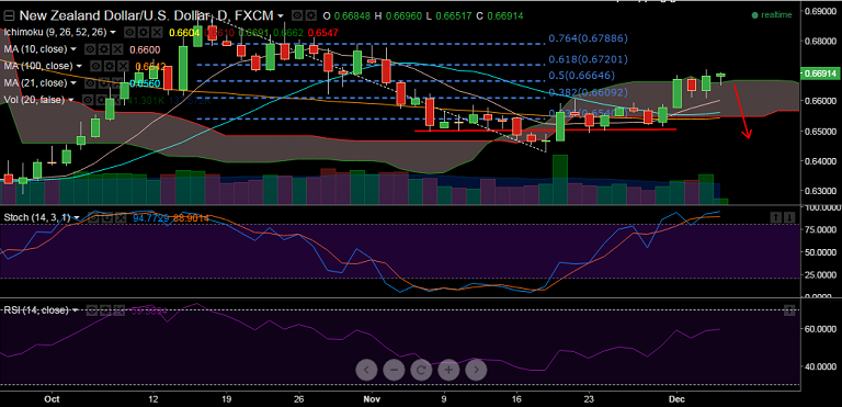 - NZD/USD has cleared cloud top resistance which was capping gains in the pair and is currently trading at 0.6683.