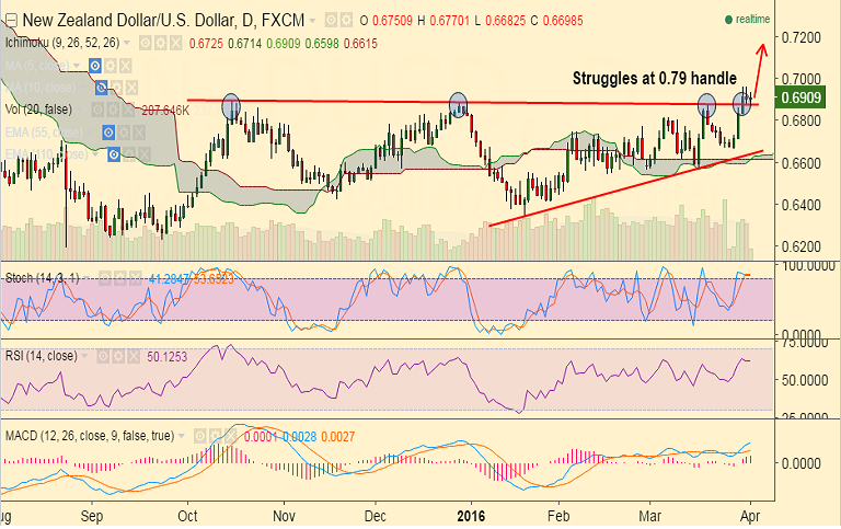 - NZD/USD pair is extending its struggle with 0.69 handle into early European trades.