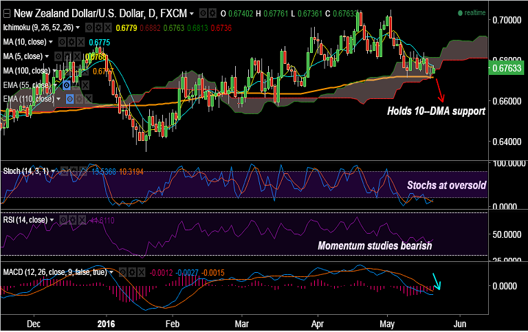 - To the upside, the next resistance is located at 0.6769(5-DMA), above which it could extend gains to 0.6800.