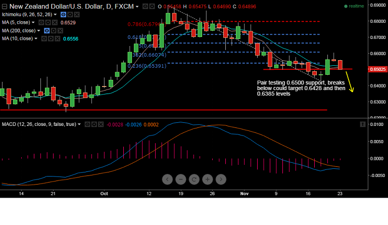 - Strong support seen at 0.6500, 0.6488 61.8% Fib retrace of Sep/Oct rally is next support below