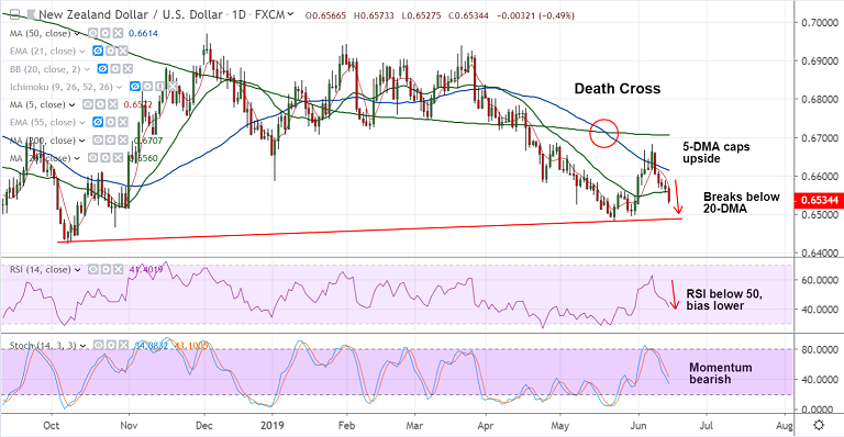 5-DMA is immediate resistance at 0.6543, break above 50-DMA could see upside resumption.
