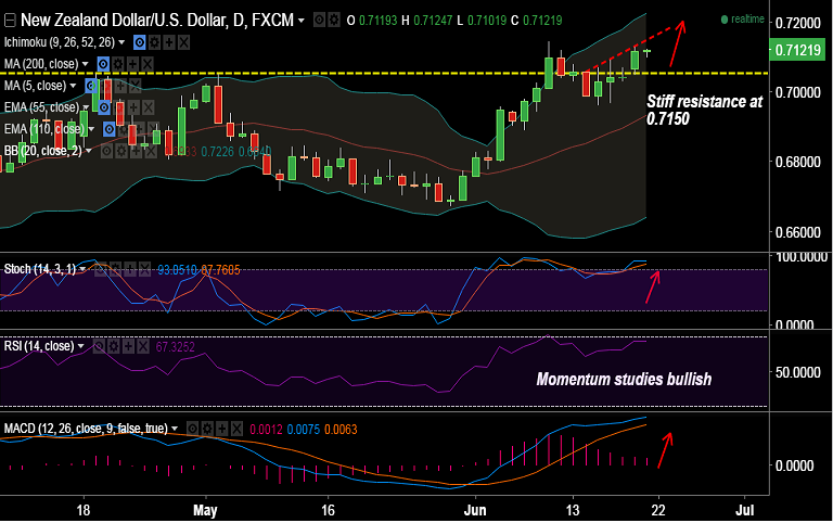 - The pair finds stiff trendline resistance at 0.7145, further upside can be seen only on breaks above.