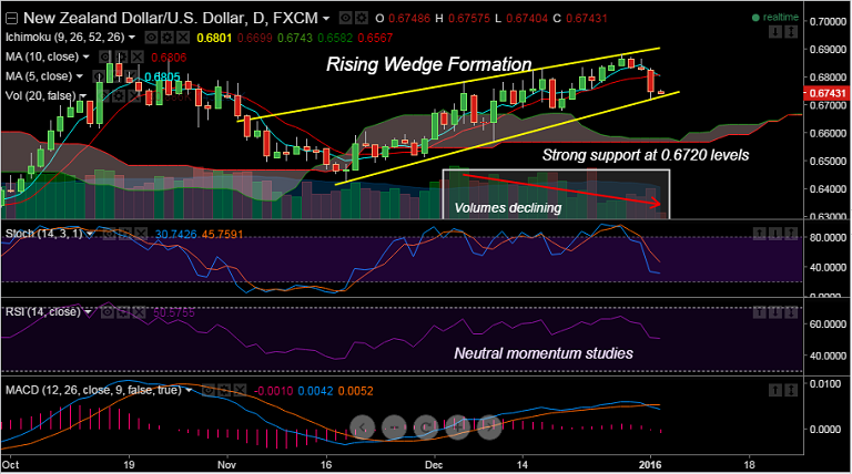 - 0.6730 is the rising trendline and wedge-base support, while immediate resistance is seen at 0.6805 (converged 5&10 DMAs).