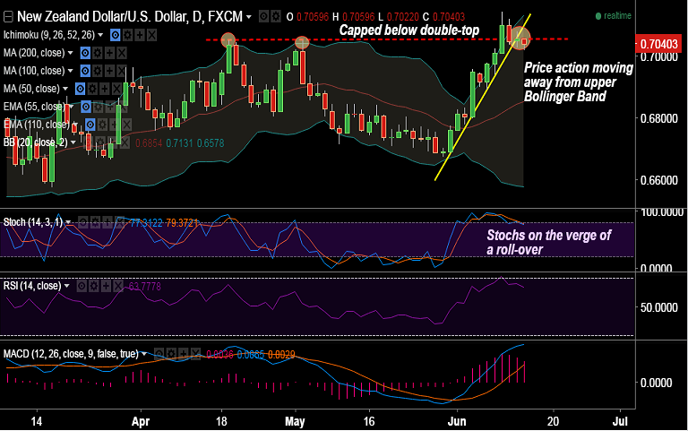 - Upside finds resistance at 0.7054 (double-top), 0.7081 (June 13th high) and then 0.71.