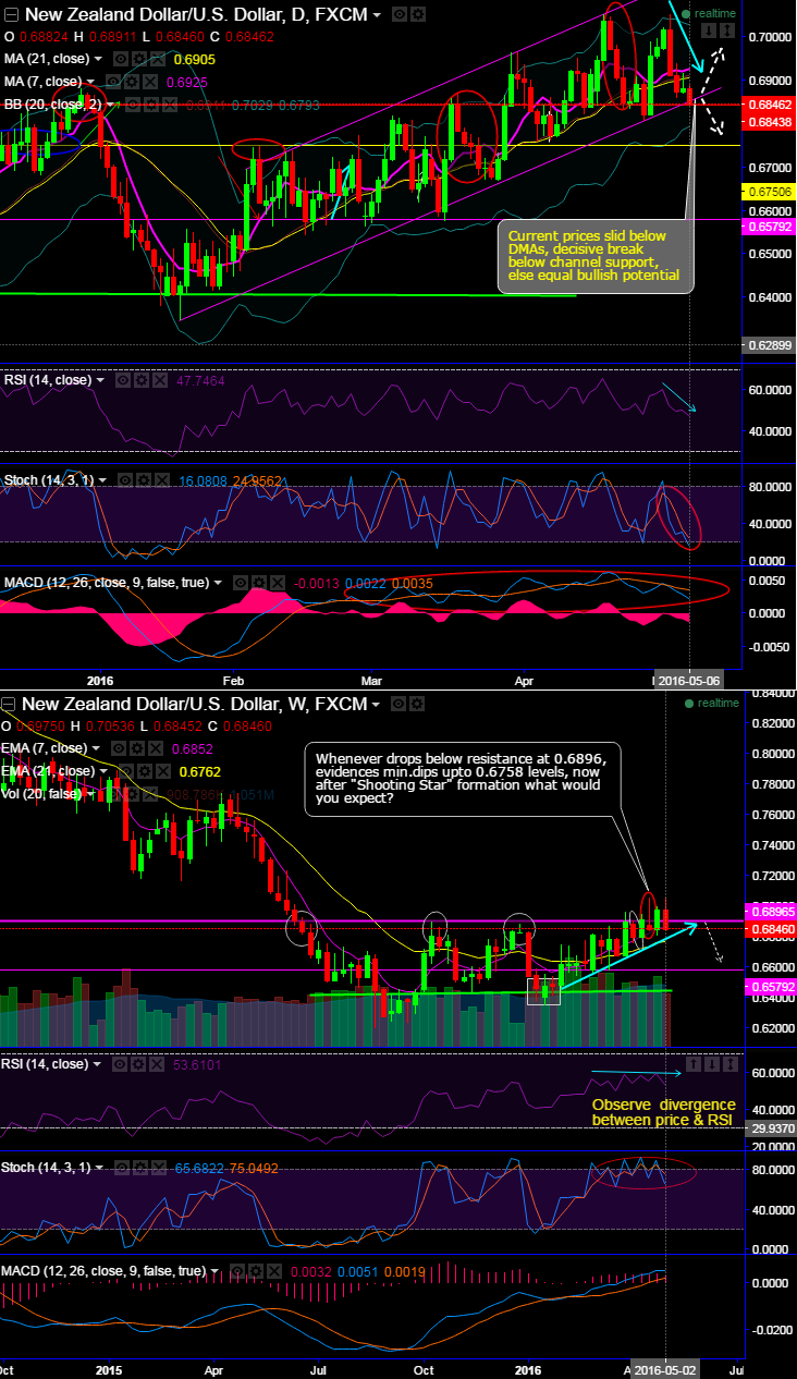 This bearish pattern on weekly occurring at stiff resistance of 0.6896 levels to signify some sort of weakness at this juncture.