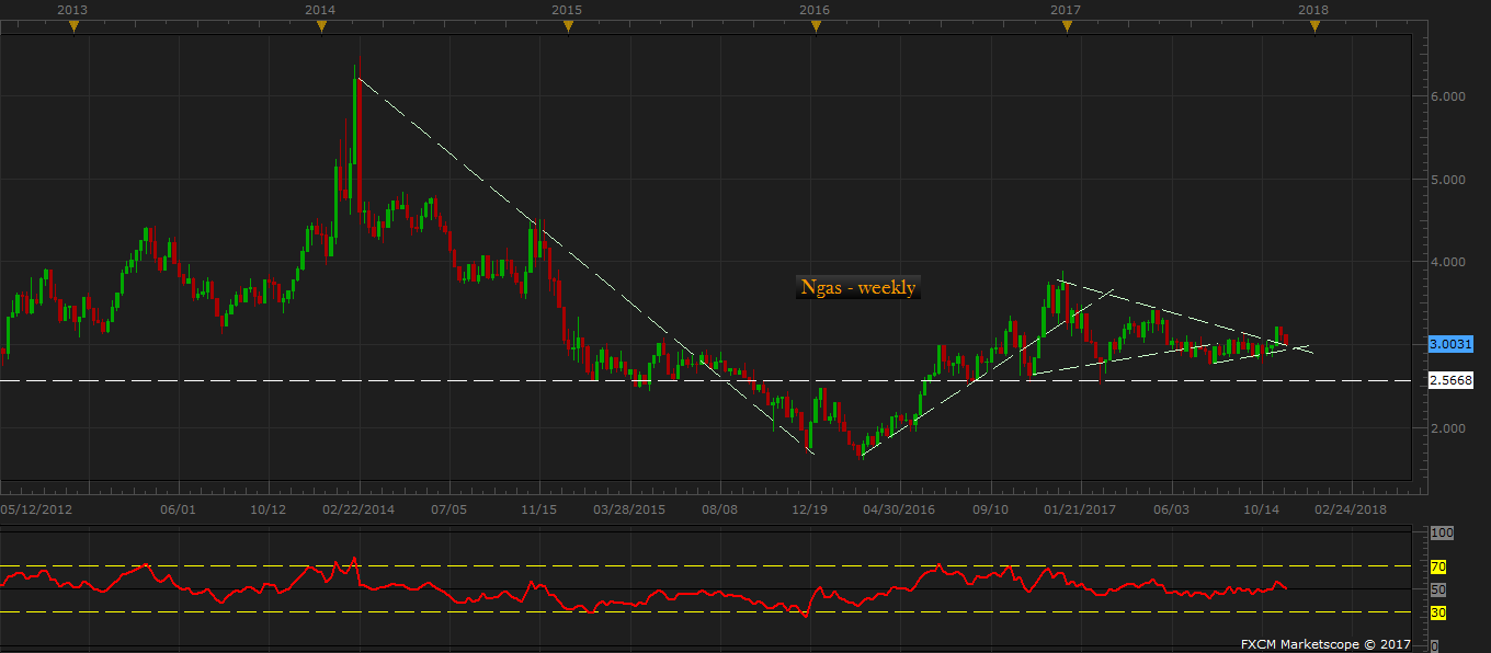 The winter drawdown has begun but it has so far failed to lift the price of natural gas decisively. The bulls have cleared the key range resistance around $3.14 area twice since September but ultimately failed to push price higher in a sustainable manner. According to our calculations at FxWirePro, natural gas is currently trapped in a fight between the bulls and the bears. Until one group gets over the other, the price is likely to remain trapped in a range of 40-45 cents per MMBtu.