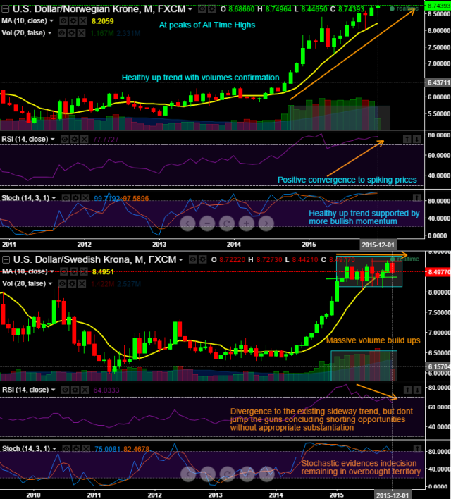 USDNOK is at all-time highs of 8.7625 trending even higher.