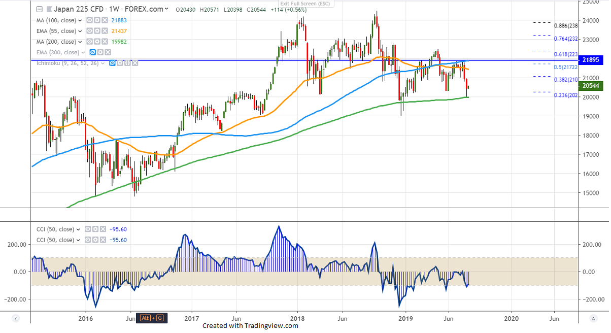 Nikkei has taken support near 200-W MA and shown a minor recovery. Wall Street has shown a huge recovery of more than 5%. USDCNY consolidating near high made during the previous week at 7.0599.