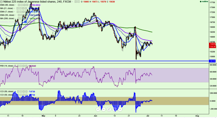 - Nikkei225 has retreated after making a high of 15795.It is currently trading around 15623.