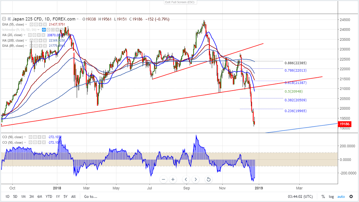 Asian markets are trading extremely weak following footsteps of Wall Street especially Nikkei has lost more than 1000 points after breaking major support 20000. US markets continues to trade weak and enters into bear market territory . US markets has closed weak and lost more than 2.5% with Dow Jones 21792 (2.91% lower) and S&P500 2357 (2.71% lower). The US 10 year yield has lost more than 3.5% and has broken major support 2.74%.US 2 year yield (2.567%) is trading above US 5 year (2.567%). Shanghai is trading flat and is currently trading around 2503 (0.04% higher). Nikkei futures has shown a minor bounce form low of 19061 and is currently trading around 19321 (0.05% lower).