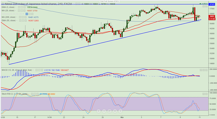 - The index is consolidating between narrow range 16460-17164 for the past three trading session. It is currently trading around 16707.