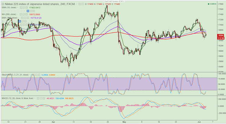 - Nikkei Index has snapped its early gains made today morning .It has declined around 0.12% today at the time of writing. and currently trading around 16582.