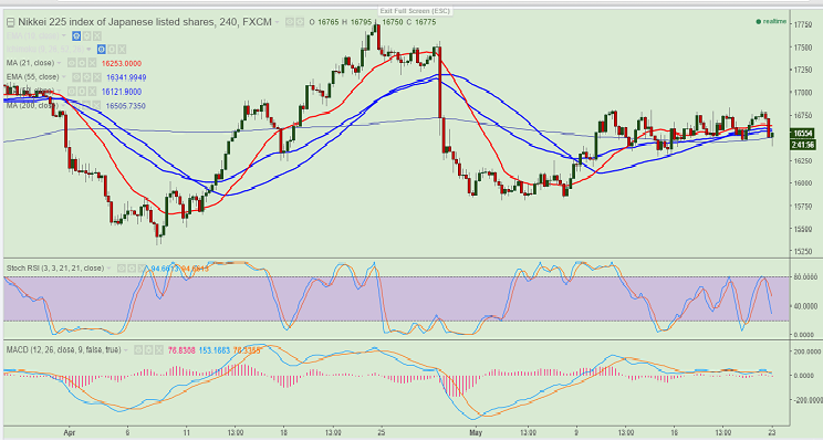 - Nikkei index has slightly recovered after making a low of 16409 at the time of writing. It is currently trading around 16562.