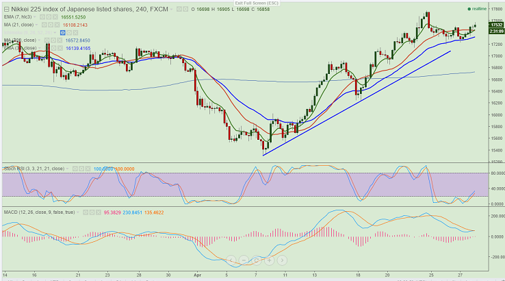 - Nikkei index is trading slightly positive around 0.31% in the morning session after Fed have kept interest rates unchanged.But markets awaits BOJ decision for further direction.
