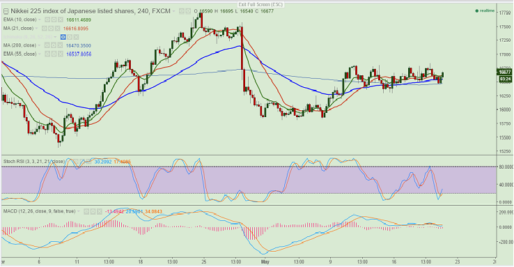 - Nikkei index has slightly recovered after making a low of 16690. It is currently trading around 16690.