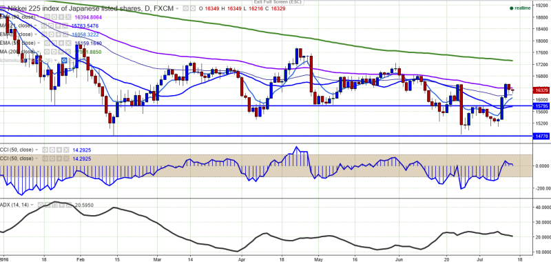 - Nikkei225 has jumped till 16536 yesterday and slightly declined from that level. It is currently trading around 16314.