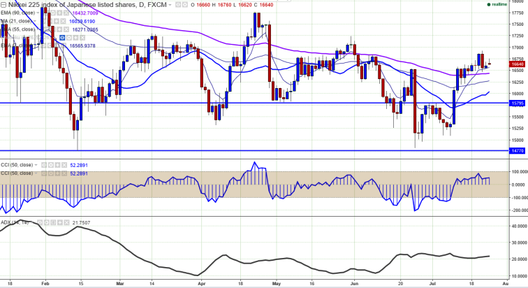 - Nikkei225 has retreated after making a high of 16760 at the time of writing.It is currently trading around 16652.