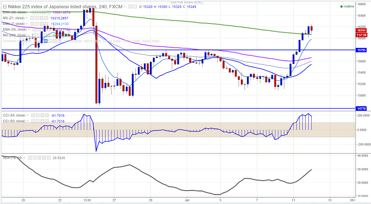 - Nikkei225 has broken major resistance 16066 and jumped till 16244 at the time of writing. It is currently trading around 16149.