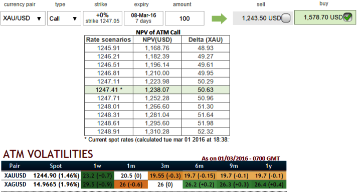 Go long in XAU/USD 3M At the money delta put, Go long 6M at the money delta call and simultaneously, Short 3M (1.5%) out of the money call with positive theta.