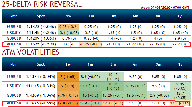 Reduced IVs are interpreted as OTC market is well balanced for long term hedging and bearish neutral risk reversals are popping up because even speculators in FX options markets might've gambled that central bank's move tomorrow would not bring in much of the implied volatilties.