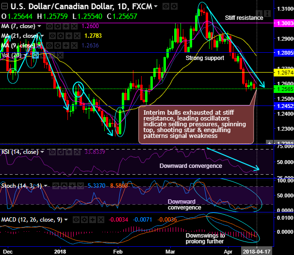 Contemplating above shot term technical rationale, at spot reference: 1.2570, you can place trades to construct tunnel binary options spreads using upper strikes at 1.2578 and lower strikes at 1.2530 levels, these leveraged instruments are likely to fetch magnified effects in payoff structure as long as underlying spot FX keeps dipping but remains above lower strikes.