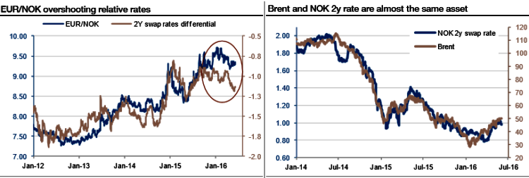 Overshooting relative rates. The EUR/NOK remains essentially driven by short-term interest rate differentials, where the FX/rates divergences tend to disappear given the strength of the relationship.