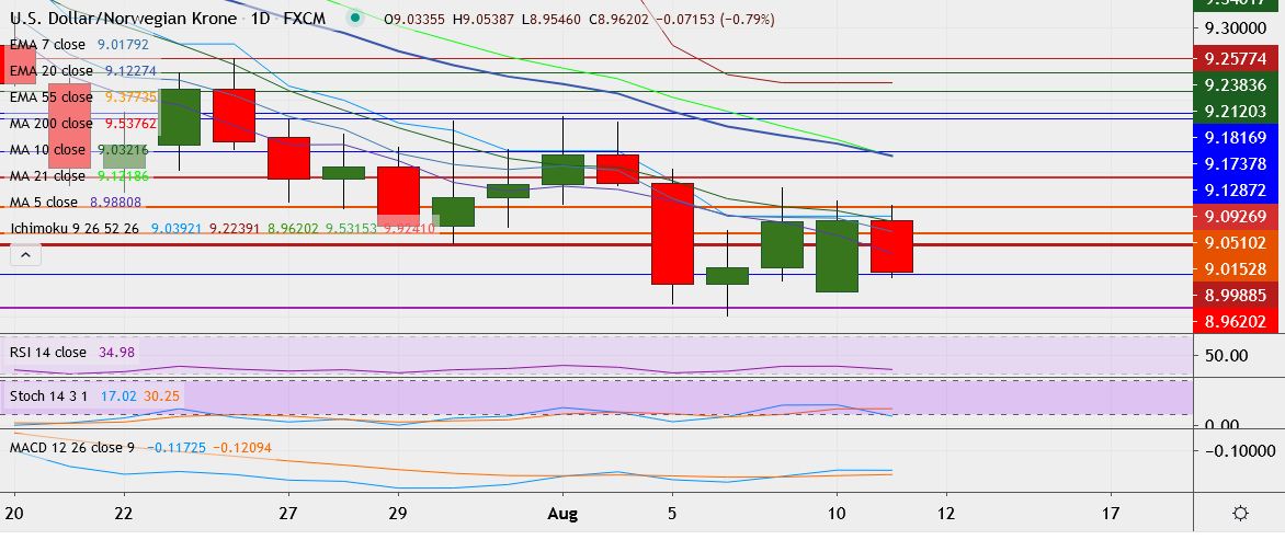 - On the downside, support is around 8.9346, break below could take it till 8.9180.