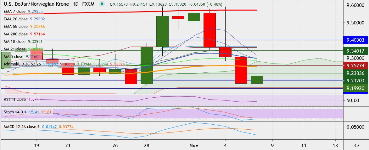 - Immediate resistance is located at 9.2546 (55-DMA), close above could take it till 9.2897 (21-DMA).