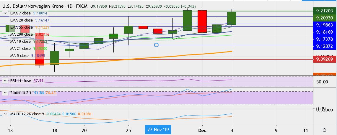 - USD/NOK trades 0.3 percent higher at 9.2082, having touched a low of 9.1346 on Tuesday, its lowest since November 25.
