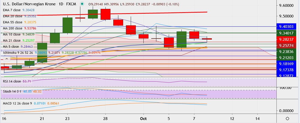 - The pair fell to a low of 9.2593 earlier in the day but found strong support at 20-EMA.
