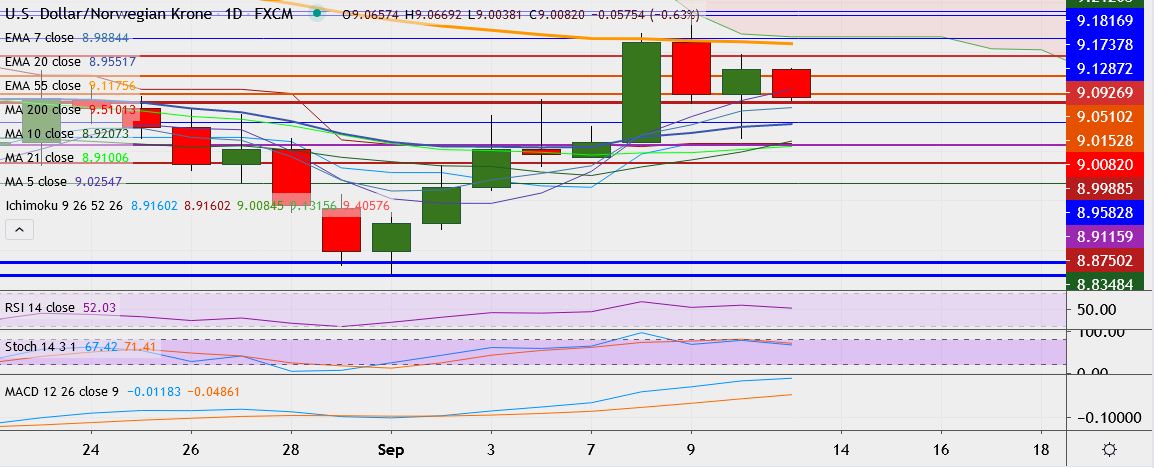 - Immediate resistance is located at 9.0970, close above could take it till 9.1216 (55-EMA).