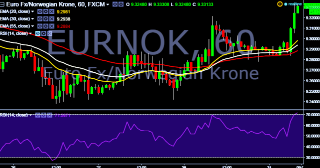 We prefer to take short position in EUR/NOK around 9.3320, stop loss 9.3524 and target 9.2420 marks.