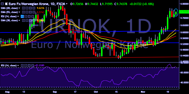 - EUR/NOK is currently trading at 9.7380 levels.