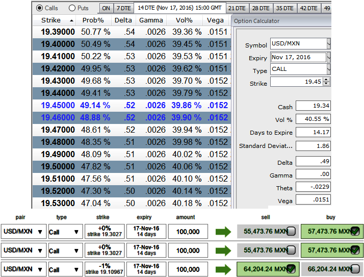 ATM IVs of this exotic Latin American pair of 2w expiries are spiking crazily above 40%, while vega flashes steady and higher positive numbers that signify OTC sentiments are more concerned about upside risks ahead of the US elections.