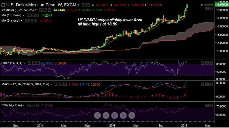 USD/MXN edges slightly lower from all-time highs at 18.80 hit on Thursday, oil prices saw a solid recovery overnight, supporting the Mexican Peso.