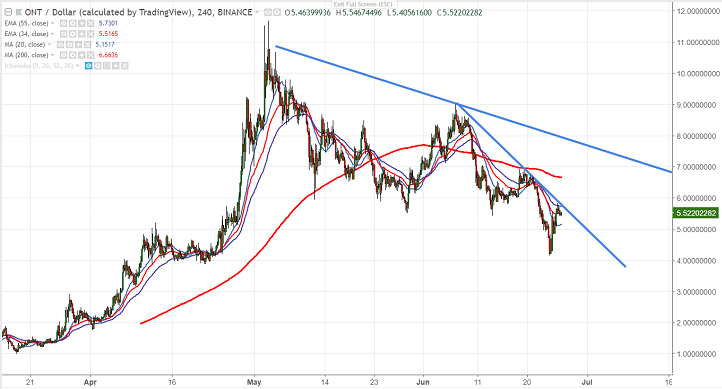 - Ontology/USD hits fresh year low of $4.11 and shown a good jump of 42% till $5.830 level ahead of Mainnet launch. The Ontology community is holding their “ Socrates MainNet pre launch” today in San-Franciso today and MainNet will go live by the end of June 2018 mostly Jun 30 th. After the release all the NEP- ONT must migrate to Ontology MainNet.