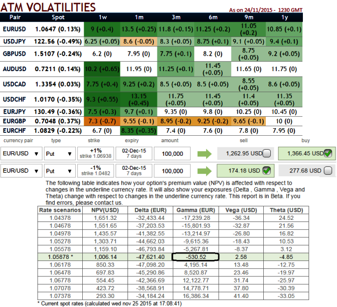 For an instance, we've considered EUR/USD's downside risks, and this can be mitigated by sparing little time on ascertaining an accurate gamma.