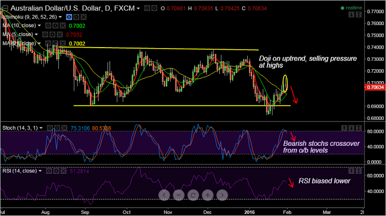 Recommendation: Good to sell AUD/USD rallies around 0.7070, SL: 0.7130, TP: 0.70/0.6920