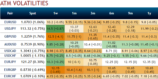 As you could spot out the implied volatilities of EURCHF ATM contracts from the nutshell evidencing IVs the contract of this underlying pair of all expiries have been the least among G10 currency segment.