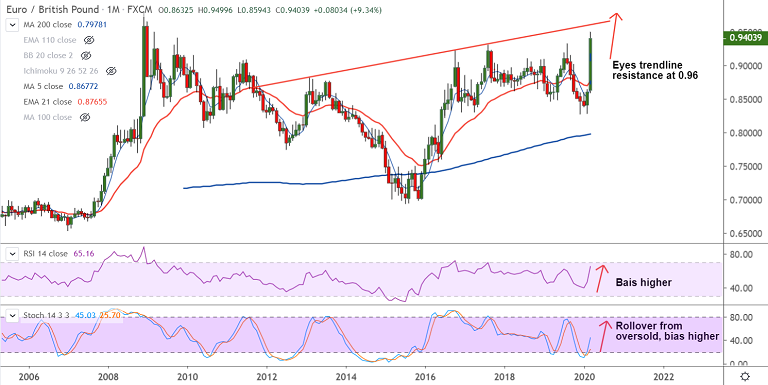 EUR/GBP spiked higher on Thursday's trade to hit 11-year high, bias remains bullish.