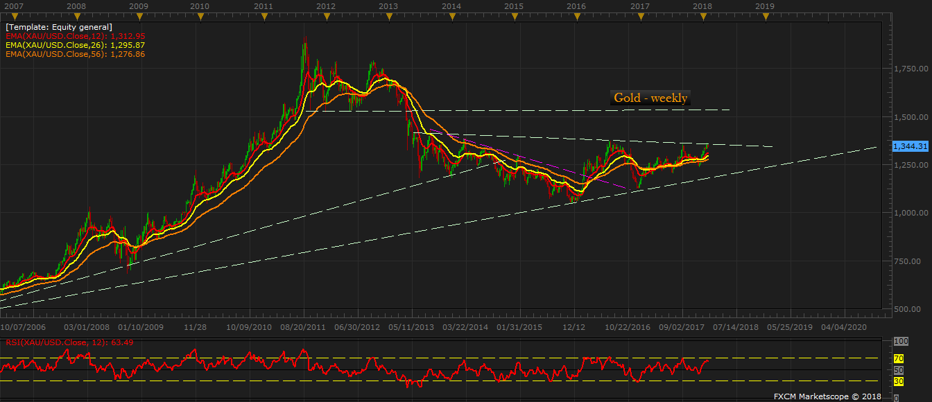 The gold has benefited immensely from a weaker dollar in 2018, ongoing geopolitical uncertainties and a rising inflation. After bottoming around $1230 per troy ounce in last December, it has sharply moved higher and is currently trading at $1345 per troy ounce.