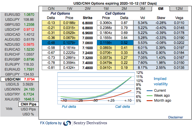 Please be informed that the positively skewed USDCNH IVs of 6m tenors still indicate the upside risks, they are still bids for OTM call strikes up to 7.48 levels.