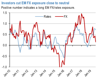 This is as investors added FX hedges to over-weighted rates positions. The positioning reduction in the August EM Client Survey was broad-based across the regions. The notable reductions were seen in EM Asia trade-related FX and all of Latam FX.