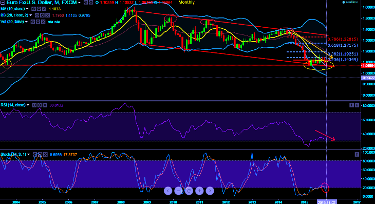 Euro has been collapsing from the peaks of May 2014 (almost more than 78.6% Fibonacci levels).