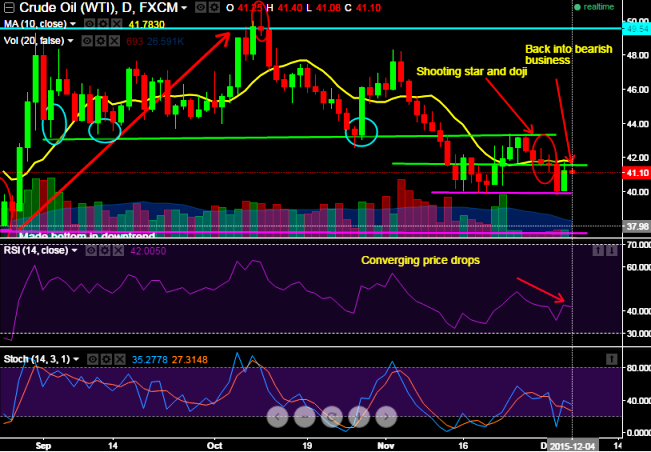 From mid November, the commodity has not even been able to clear 23.6% fibo retracements, it tend to collapse the moment it hits 43 levels.